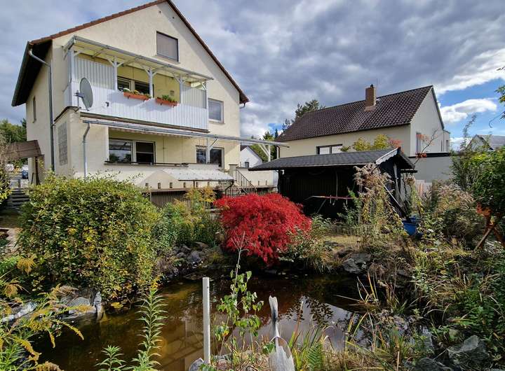 Dieses Mehrfamilienhaus mit schönem Garten und Teich können Sie in Darmstadt-Eberstadt besichtigen. Insgesamt bietet das Haus 267qm Wohn- und 502qm Grundstücksfläche.