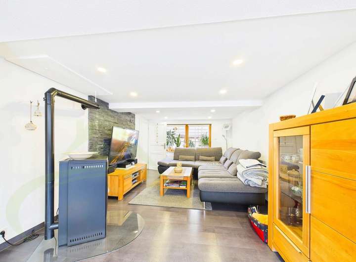 Technisch ist das Haus solide ausgestattet: doppelt verglaste Fenster, eine Gas-Zentralheizung sowie ein effizienter Pelletofen im Wohnzimmer sorgen für ein angenehmes Raumklima. Die Außenstellplätze direkt vor dem Haus bieten Komfort im Alltag.