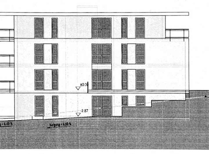 projektiertes Baugrundstück ⟶ genehmigte Bauanfrage für 10-Familienhaus