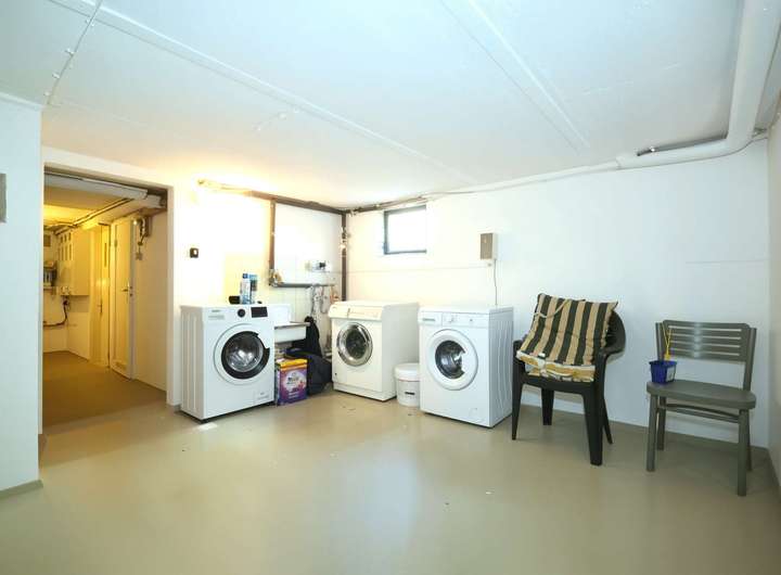 Ergänzend zu den Wohneinheiten bietet das Gebäude einen voll unterkellerten Bereich mit kleinem Bad, Waschraum und mehreren Abstellräumen. Eine moderne Metallgarage aus dem Baujahr 2021 mit gepflastertem Boden, ein Pkw-Stellplatz vor dem Haus, ein Holz-Gartenschuppen sowie gepflegte Außenanlagen mit gepflasterten Flächen und Grünbereichen runden das Angebot ab.