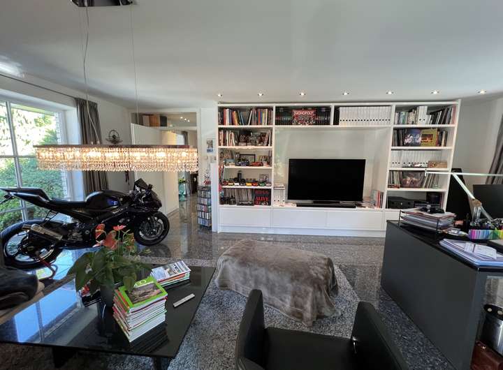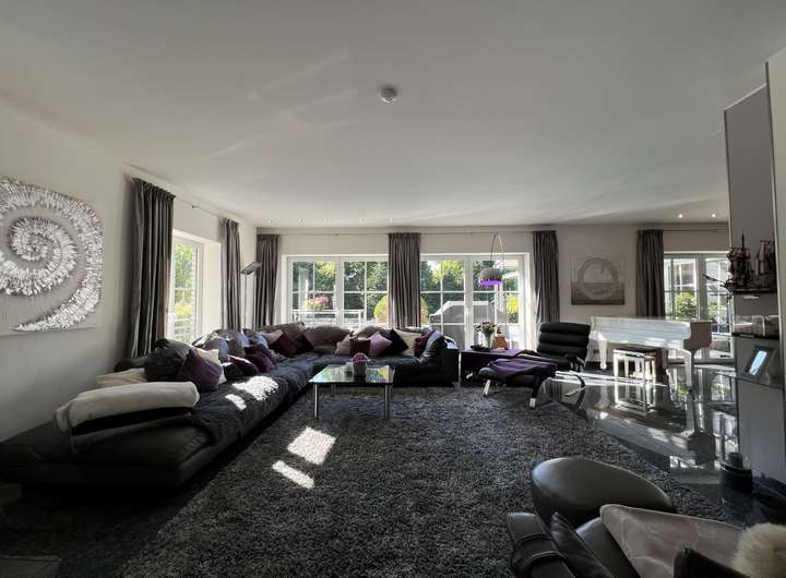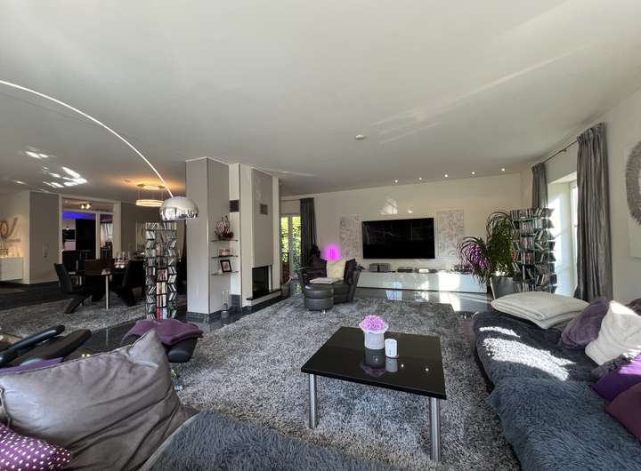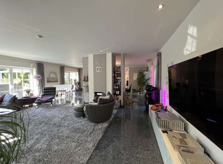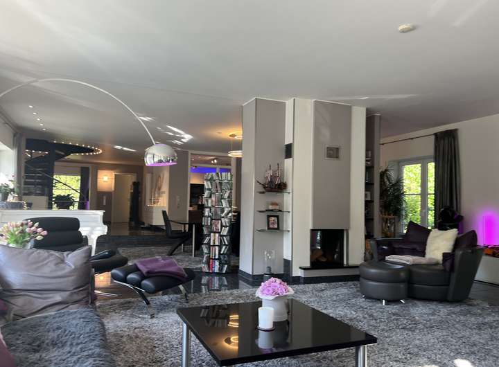 Die Architektur der Villa mit einem freistehenden fulminanten Garagenhaus fügt sich hervorragend in die Umgebung ein und schafft mit der besonderen Gestaltung der gigantischen Wohn- & Nutzfläche von ca. 790 qm, dem Grundstück mit 1.800 qm und dem angrenzenden, gepflegten Nachbarschaftsbild, dem nahgelegenen Naturschutzgebiet, ein behagliches Wohn- & Lebenskonzept auf höchstem Niveau.