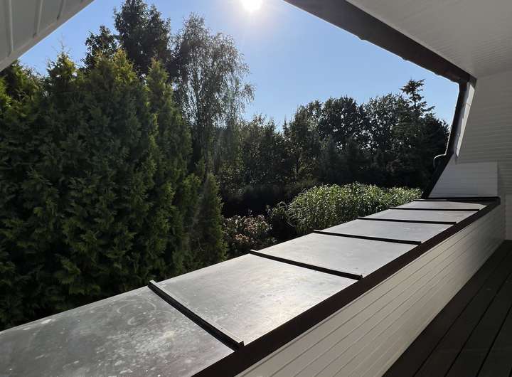 Die nach Süden ausgerichteten Terrassen bieten einen teilweise überdachten, freien & windgeschützten, sonnigen Außenbereich.