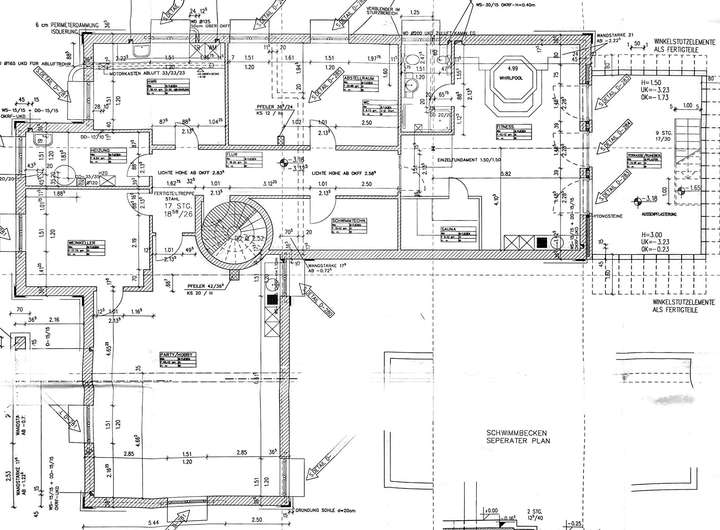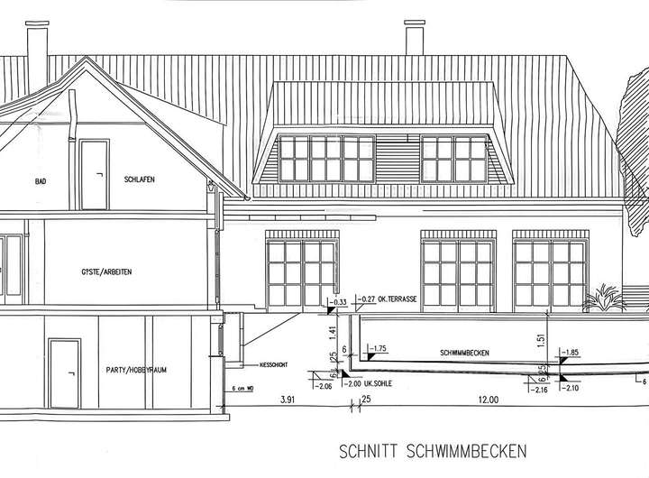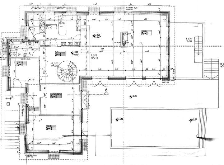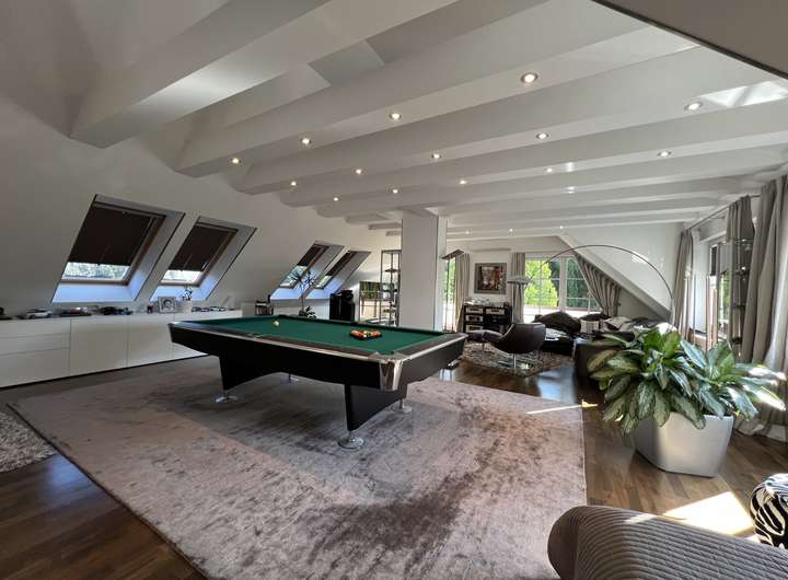 Zudem kommen noch die Nutzflächen des Kellers, der gesamten Terrassen, des Garten-Pavillons, des Poolbereiches mit Duschzone und des Garagenhauses mit ca. 350 qm dazu, so dass sich eine grandiose Wohn- & Nutzfläche von ca. 790 qm ergibt.