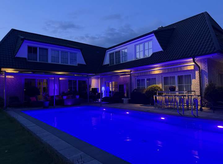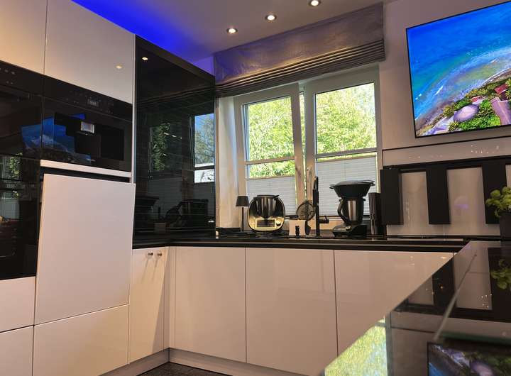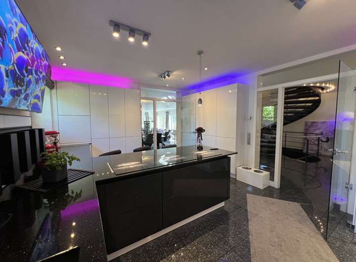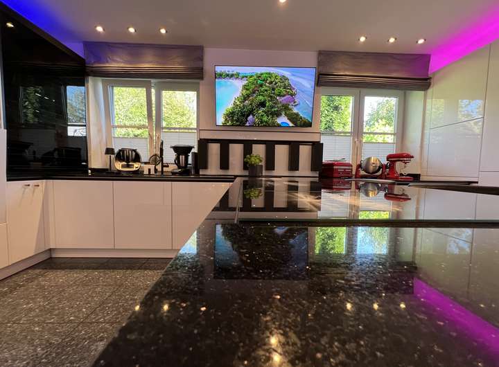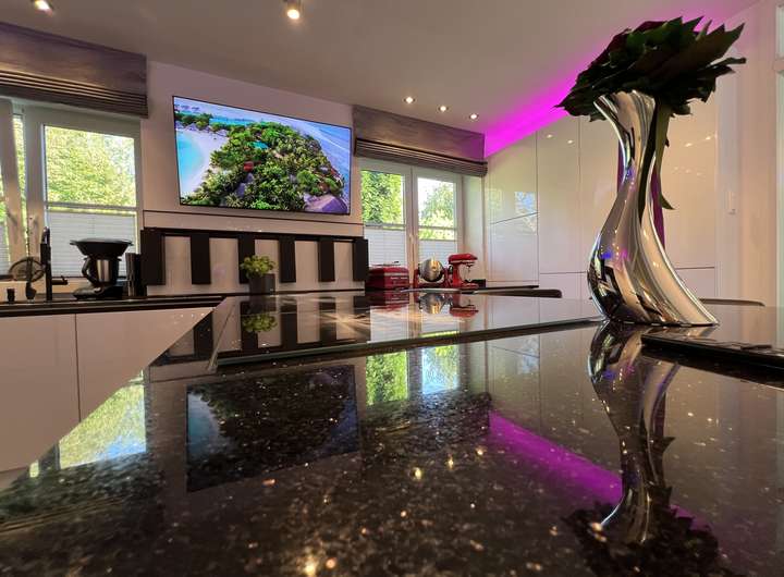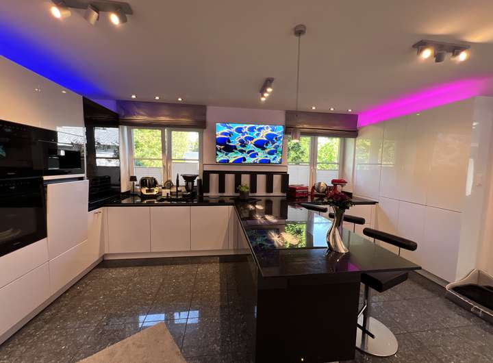 Hier ist Entertainment Pur - auch mit großen TV und Lichtkonzept im Küchenbereich.