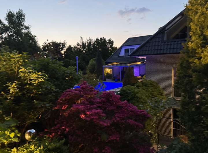 Der wunderschön angelegte Garten mit dem perfekt ans Haus angepassten & beheizten Außenpool, ist harmonisch in das Gesamtkonzept des Hauses integriert und verleiht ihm einen einen besonderen Charme.