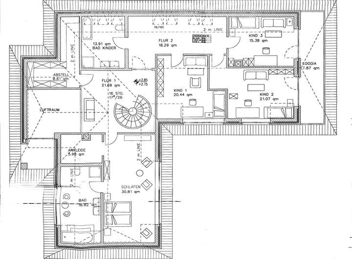 Im OG/DG wurde ein weiterer gigantischer & geöffneter Wohnbereich ausgebaut - vorab befanden sich hier 3 Kinderzimmer - Rückbau wäre möglich.
