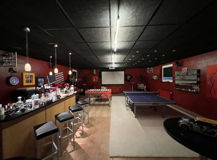 Vollunterkellert, Parkett- & Fliesenböden, Fußbodenheizung, überwältigender Musik- & Akustikraum (isoliert/ gedämmt), Hausbar, Hobbyraum, HWR & Heizung (sowie Pooltechnik), Prachtvoller Weinkeller.