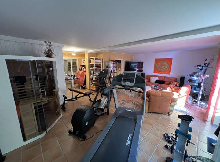 Der Fitness- & Wellnessbereich im UG hat bodentiefe Fenster & Türen mit Terrassenzone - auch als Wohnbereich nutzbar.