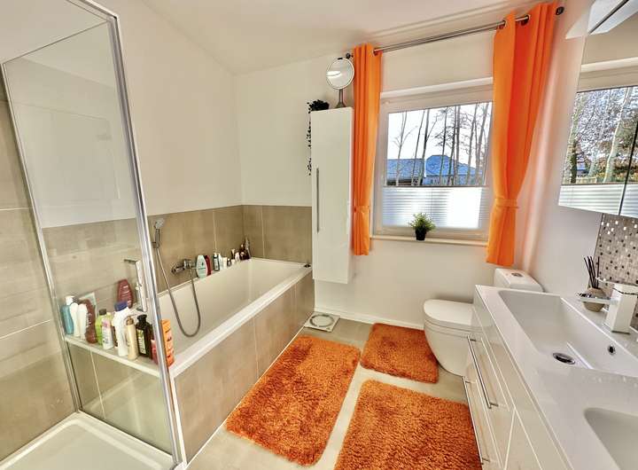 Das Haus besticht durch moderne Technik, darunter eine neue Gasheizung mit integriertem Warmwassertank und zentral gesteuerter Fußbodenheizung. DSL und Netzwerkanschlüsse in den Wohn- und Schlafräumen ermöglichen beste Voraussetzungen für zeitgemäßes Wohnen. Ein Serverschrank sowie vorinstallierte Glasfaserrohre bieten Optionen für künftige Glasfaseranbindungen. Die elektrisch steuerbaren Jalousien setzen den hohen Standard in puncto Bequemlichkeit fort.