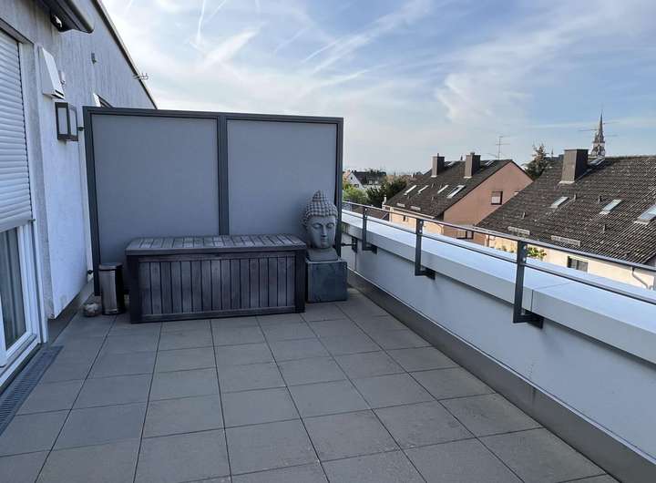 Der kleine Garten mit Terrasse und Staufläche ist perfekt zum Entspannen und bietet ausreichend Platz für Outdoor-Aktivitäten. Der relativ große Abstand zum Nachbarn garantiert Ihnen absolute Privatsphäre und eine angenehme Ruhe. Falls der Garten nicht ausreichen sollte, haben wir im Dachgeschoss eine Terrasse mit atemberaubendem Blick auf die Frankfurter Skyline. Stellen Sie sich vor, wie Sie Ihren Tag mit einem Frühstück auf der Dachterrasse beginnen und dabei den Blick auf die Stadt genießen - ein unbeschreibliches Gefühl.