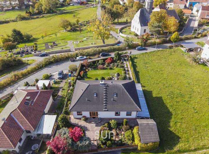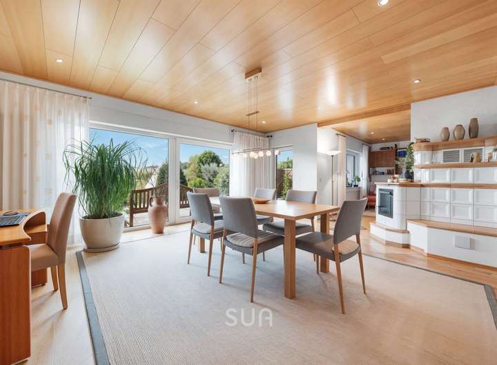Willkommen in diesem außergewöhnlich gepflegten Einfamilienhaus – einem Zuhause, das Komfort, Stil und Ruhe perfekt vereint. Das Anwesen liegt eingebettet in einen traumhaft angelegten Garten und begeistert durch seine beeindruckende Großzügigkeit, die durchdachte Architektur und die unvergleichliche Aussicht, die sich durch die großen Fensterflächen eröffnet. Hier genießen Sie ein Panorama, das jeden Tag aufs Neue fasziniert – sei es beim Frühstück mit Blick ins Grüne oder beim Sonnenuntergang auf der Terrasse.