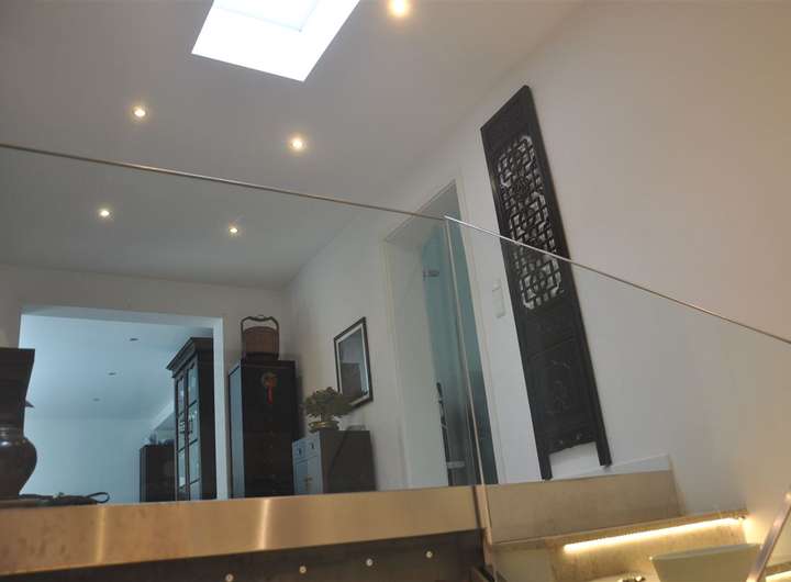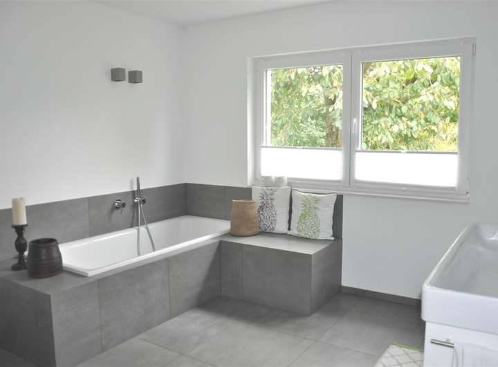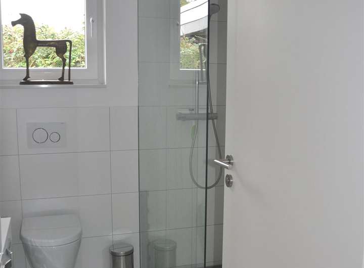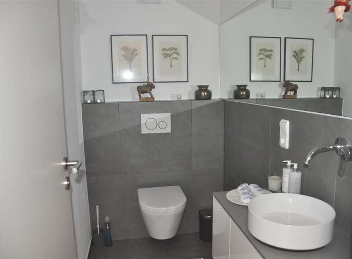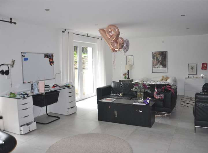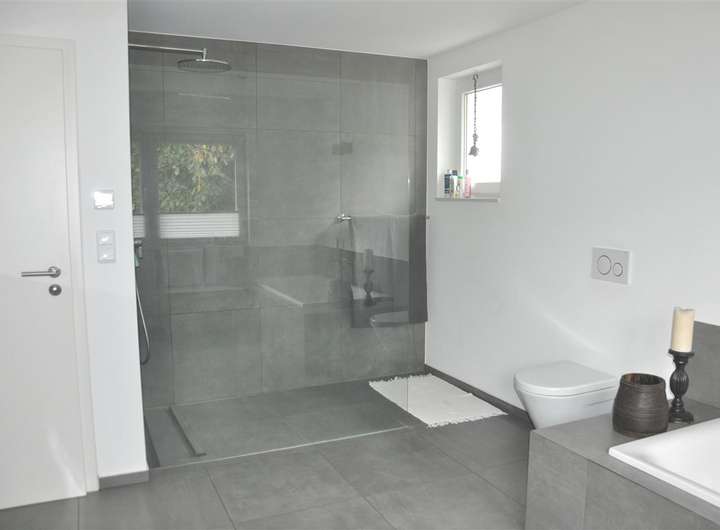 Das Raumangebot wird durch einen zusätzlichen ausgebauten Raum (derzeit Fitnessraum) im komplett gefliesten Gartengeschoss sinnvoll ergänzt. Hier finden auch die üblichen Nutz- und Funktionsräume ihren Platz.