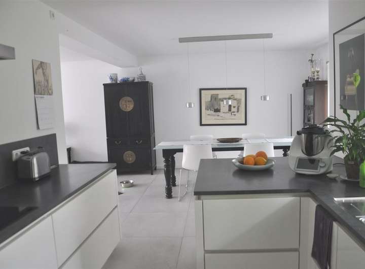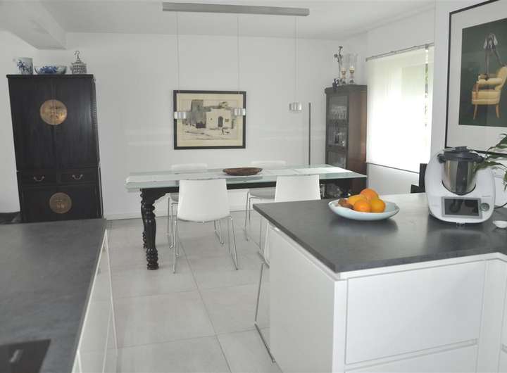 - passgenaue Einbauküche mit allen E-Geräten und Esstheke