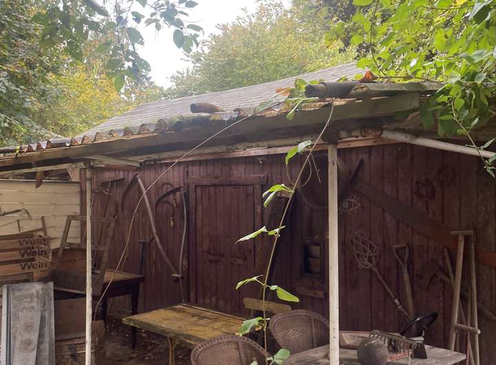 Das Grundstück ist mit Schuppen voll gestellt.