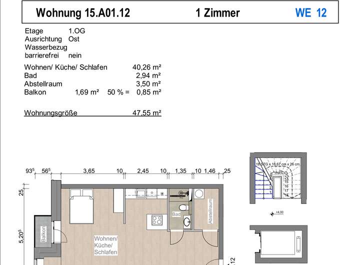 Die 1-Zimmer-Neubauwohnung mit Balkon hat ca.47,55 qm die sich wie folgt aufteilen: