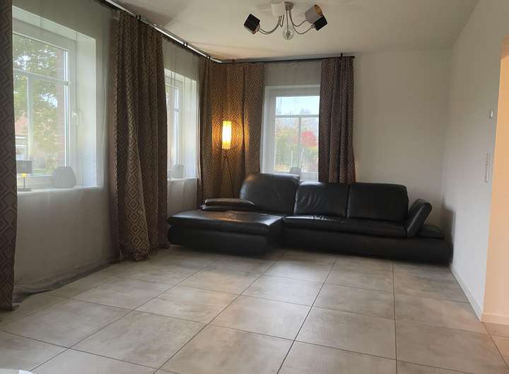 Wohnzimmer: Ein helles und großzügiges Wohnzimmer erwartet Sie, ideal zum Entspannen und Genießen von gemeinsamen Momenten mit Familie und Freunden. Große Fensterflächen mit Iso- Dreifachverglasung bringen viel Tageslicht herein und schaffen neben dem verbesserten Schall- und Wärmeschutz eine freundliche Atmosphäre.