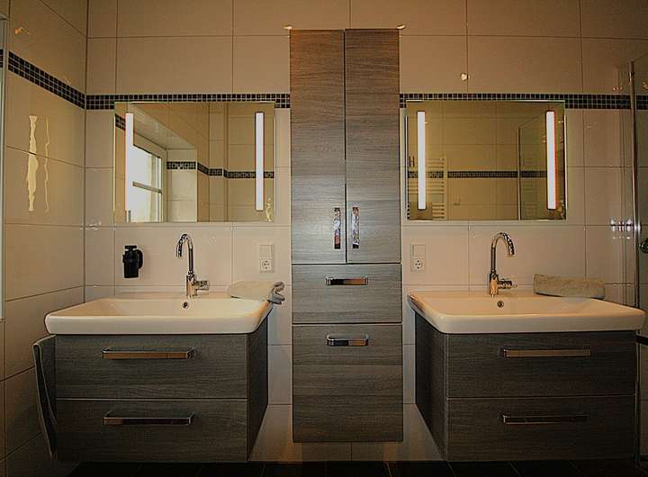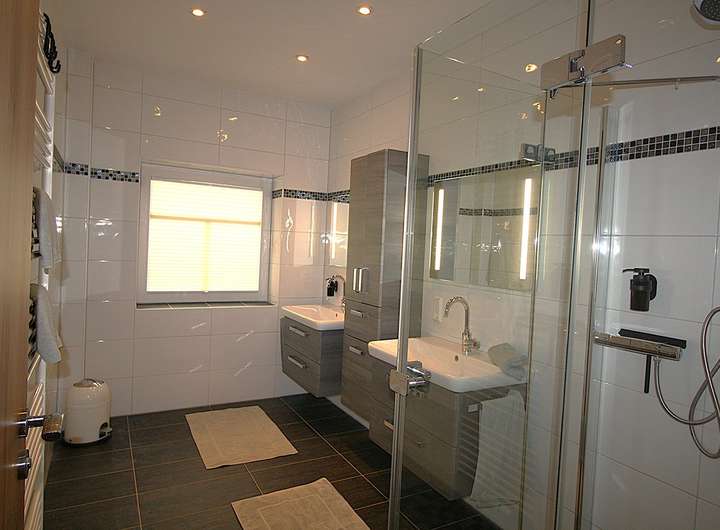 Bäder: Zwei Bäder mit ebenerdiger Dusche und modernem Design stehen zur Verfügung. Das Wannenbad im Dachgeschoss lädt zur Entspannung ein. Ebenfalls finde Sie im Erdgeschoss ein Gäste-WC und einen großzügigen Hauswirtschaftsraum.