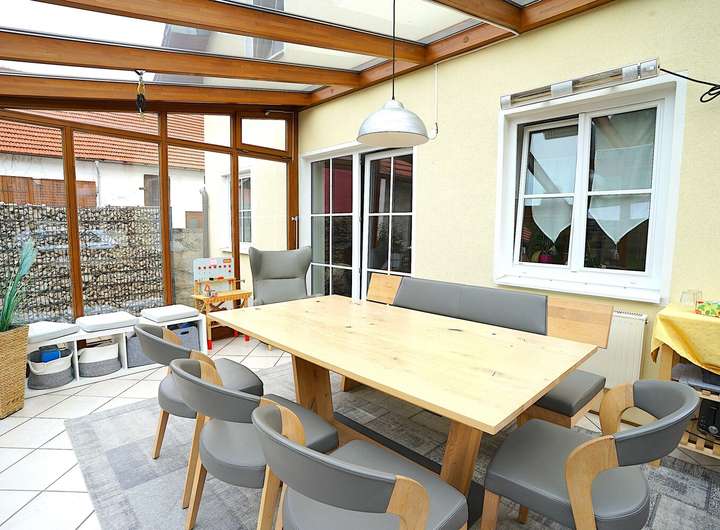 Die moderne Gasheizung bringt effiziente, zuverlässige Wärme; die gute Dachdämmung sowie die Kunststoff-Isolierverglasung der Fenster trägt zudem zu hervorragenden Dämmwerten und niedrigen Energiekosten bei. Der Wintergarten auf der Westseite ist ein Highlight der Immobilie und schafft ganzjährig zusätzlichen Lebensraum mit Blick in den gepflegten und nicht einsehbaren Garten. Eine weitere Terrasse, mit Westausrichtung, lädt zum Verweilen ein.