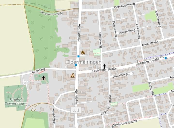 Das Haus liegt zentral in Obermeitingen, der Ort mit ca 1.800 Einwohnern ist eine Gemeinde im oberbayerischen Landkreis Landsberg am Lech. Obermeitingen liegt auf der westlichen Lechterrasse und erstreckt sich über eine Fläche von etwa 10,0 km². Die Gemeinde befindet sich auf einer Höhe von rund 575 m. Südöstlich der Gemeinde liegt ein Naherholungsgebiet mit einem Badesee, der aus einer ehemaligen Kiesgrube entstanden ist.