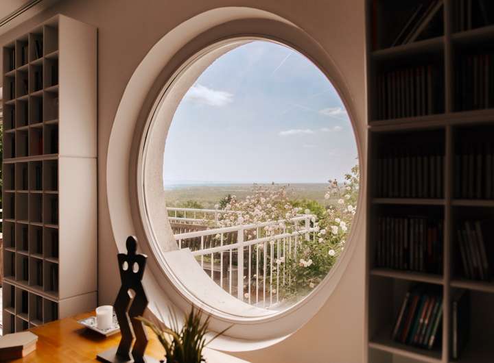 Die Architektur folgt dem Prinzip „luftig, hell, großzügig“ – mit offenen Ebenen, hohen Decken und Perspektiven, die sich immer wieder neu erschließen. Besonders eindrucksvoll: der Blick aus den Fenstern nach Süden, der wie ein lebendiges Gemälde wirkt.