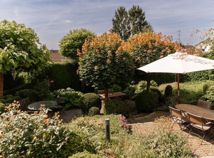 Nahezu nicht einsehbarer Garten, liebevoll angelegt mit mehreren Terrassenflächen und mit altem Baumbestand, 455m2 Grundstück