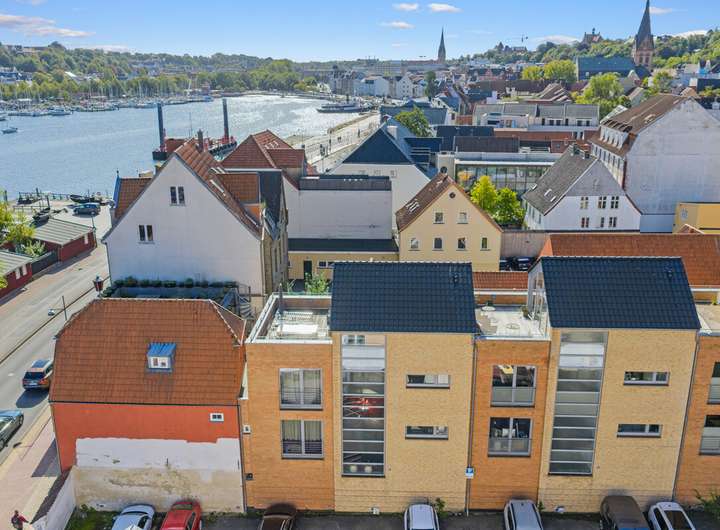 Inmitten der historischen Altstadt von Flensburg und direkt am Hafen befindet sich dieses exklusive Townhouse, das städtischen Wohnkomfort mit maritimem Flair auf besondere Weise vereint. Auf rund 183 m² Wohn- / Nutzfläche, verteilt über vier Ebenen, bietet diese Immobilie ein außergewöhnliches Wohnkonzept mit hochwertiger Ausstattung und einem einzigartigen Panoramablick über den Flensburger Hafen und die Förde.