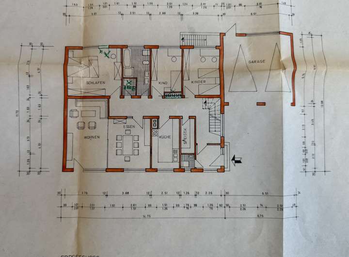 Im Erdgeschoss befindet sich eine großzügige 4-Zimmer-Wohnung mit rund 140 m² Wohnfläche. Über das zentrale Treppenhaus gelangen Sie in die Wohnung. Hier werden Sie von einem hellen, offenen Wohn- und Essbereich mit praktischer Durchreiche zur Küche überrascht. Drei schöne Schlafzimmer, ein modernes Badezimmer mit Dusche und Badewanne (2018 erneuert), eine Speisekammer sowie ein Gäste-WC vervollständigen diese Etage.