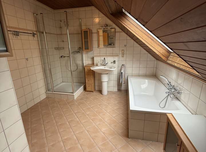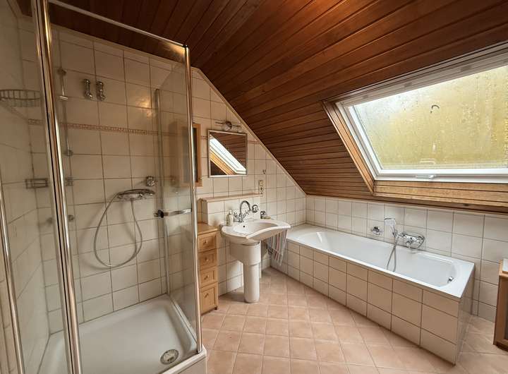 Das Obergeschoss bietet eine 3- bis 4-Zimmer-Wohnung (je nach Raumnutzung), deren Raumaufteilung flexibel gestaltet werden kann. Die Elektrik wurde im Jahr 2000 erneuert, die Dachfenster stammen ebenfalls aus 2018. Mit etwas handwerklichem Geschick lässt sich hier schnell ein charmantes Zuhause schaffen.