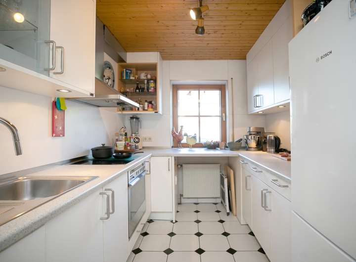 Vom Essbereich betreten Sie die halb-offene Küche, die auch im Haus verbleiben wird.