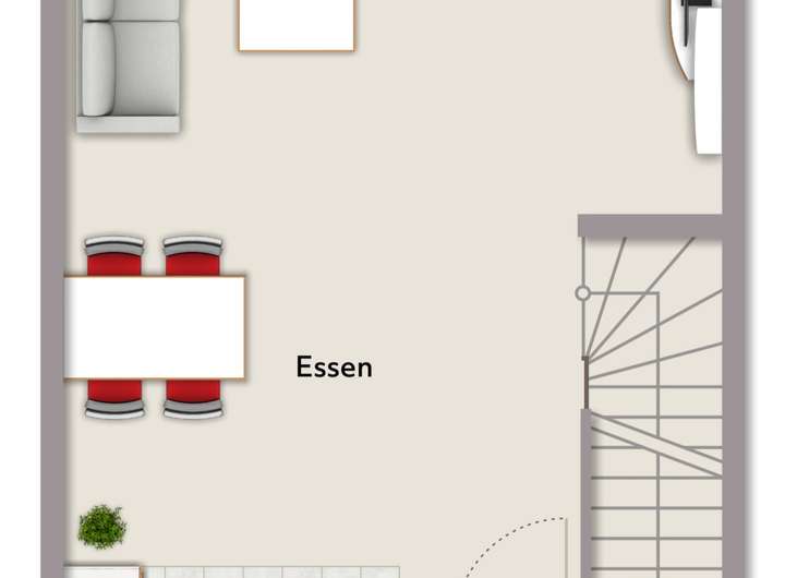 Im Erdgeschoss empfängt eine kompakte Diele mit Zugang zum Gäste-WC sowie zur offenen Küche. Die Küche ist praktisch geschnitten und liegt zur Straßenseite – kurze Wege zum angrenzenden Essbereich sorgen für einen reibungslosen Alltag. Der großzügige Wohn- und Essbereich erstreckt sich zur Gartenseite und bietet viel Raum für gemeinsames Leben. Große Fensterflächen sorgen für Tageslicht, während sich direkt davor eine überdachte Terrasse anschließt – ein echter Lieblingsplatz, der den Wohnraum nach draußen verlängert und bei jedem Wetter nutzbar bleibt.