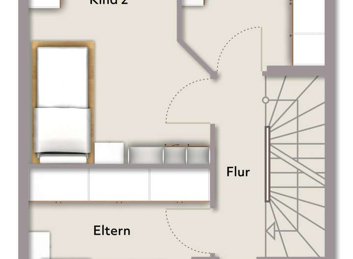 Im Obergeschoss befinden sich drei gut geschnittene Schlafzimmer. Das Elternschlafzimmer liegt zur Straßenseite, zwei weitere Zimmer – ideal für Kinder, Gäste oder Homeoffice – sind zum Garten ausgerichtet. Ein zentral gelegenes Badezimmer rundet diese Etage ab.
