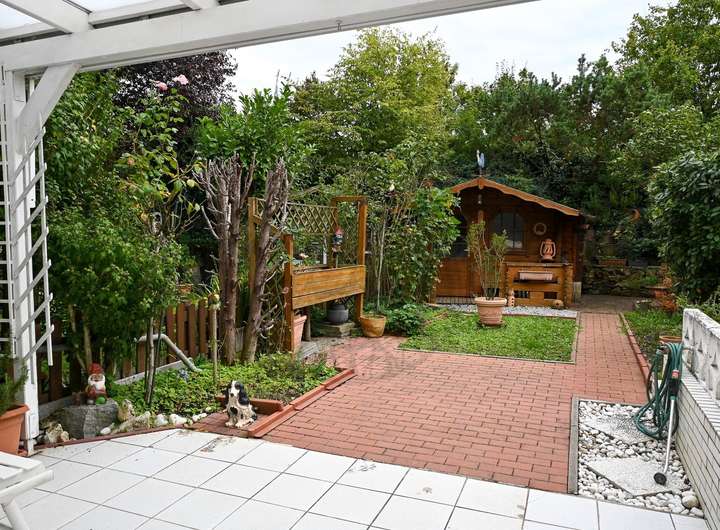 Das Haus liegt auf einem rechteckigen Grundstück in gewachsener, familienfreundlicher Nachbarschaft. Der Garten bietet Platz zum Spielen, Gärtnern oder Entspannen – ein ruhiges Stück Grün, das den Alltag entschleunigt.