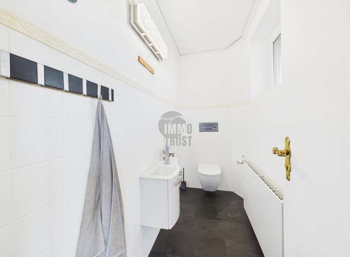 Die gepflegte Einbauküche bietet Platz für kulinarische Erlebnisse. Das Gäste-WC und weitere praktische Räume ergänzen das Erdgeschoss sinnvoll.