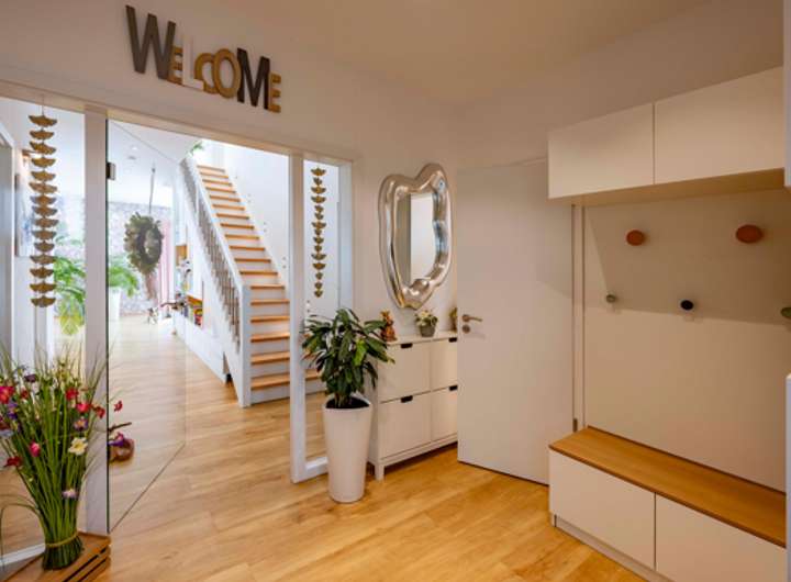 Der Wohnkomfort wird durch ein Smart-Home-System, eine automatische Belüftungsanlage, ein automatisches Bewässerungssystem sowie eine Wasserentkalkungsanlage weiter optimiert. Für eine schnelle und zuverlässige Internetverbindung sorgt der Glasfaseranschluss.