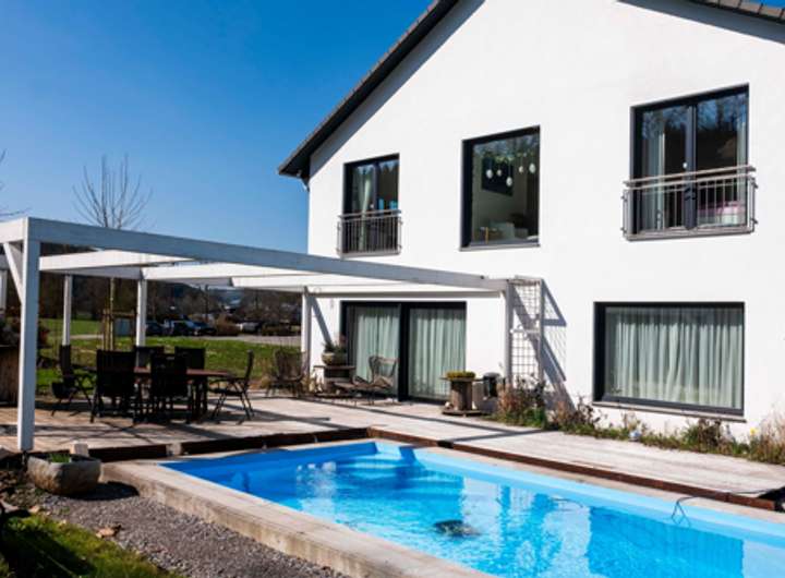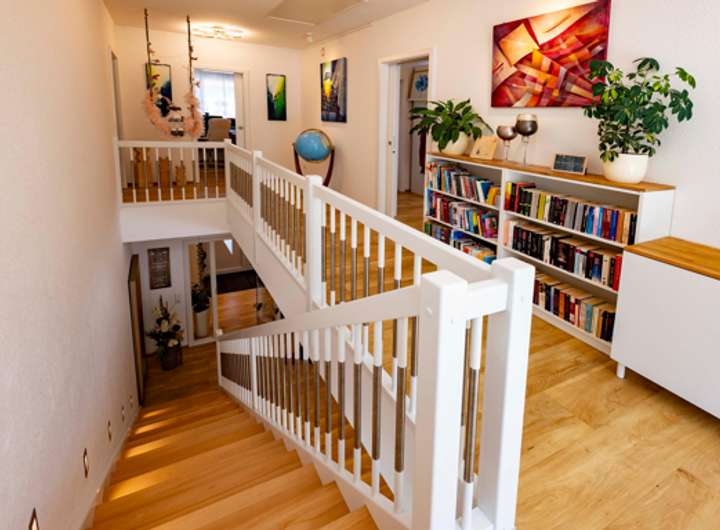 Erleben Sie modernen Wohnkomfort in diesem 2019 erbauten, exklusiven Einfamilienhaus. Die Immobilie erstreckt sich über zwei lichtdurchflutete Etagen und begeistert mit Deckenhöhen von 2,77 Metern, die ein Gefühl von Weite und Freiheit schafft. Der optimale Grundriss harmoniert perfekt mit der erstklassigen Innenausstattung. Mit sieben geräumigen Zimmern, zwei stilvollen Bädern und einem separaten Gäste-WC bietet das Haus ausreichend Platz für große Familien oder Paare mit hohem Platzbedarf.