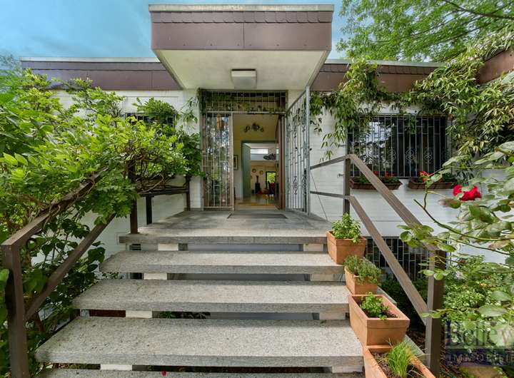 The house is entered via a spacious entrance area and immediately unfolds into the large dining area. Here you can access the open kitchen, which was completely renovated in 2015, as well as the spacious, light-flooded living room which accesses to the large, south-facing terrace. On the same floor are 3 bedrooms and 2 bathrooms. Both bathrooms were renovated in 2017. A beautiful, robust real wood parquet was laid in this area.
