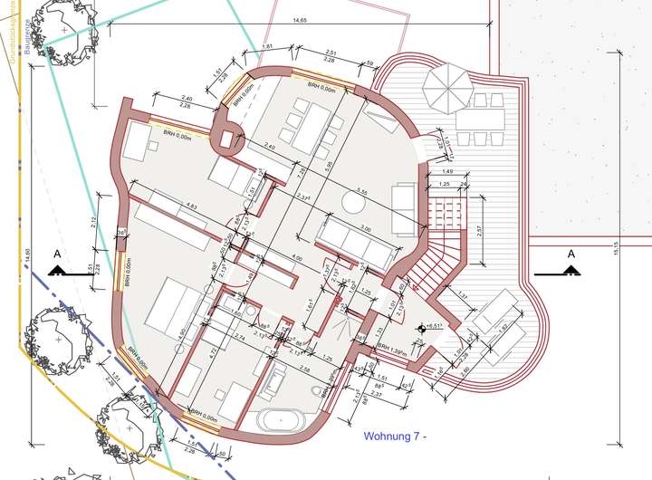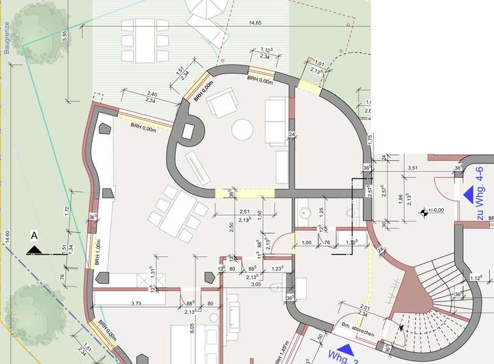 - Wohnung 3 | EG | 3 Zi | 114,8 m² + 42 m² Terrasse | runde Form, Garage + Stellplatz