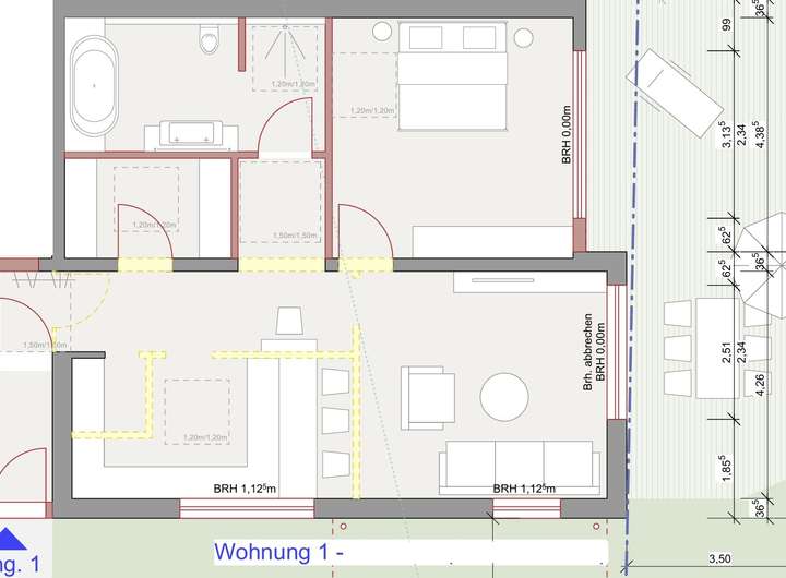 • Wohnung 1 | EG | 2 Zi | 92 m² + 36 m² Terrasse | barrierefrei, Garten, Garage