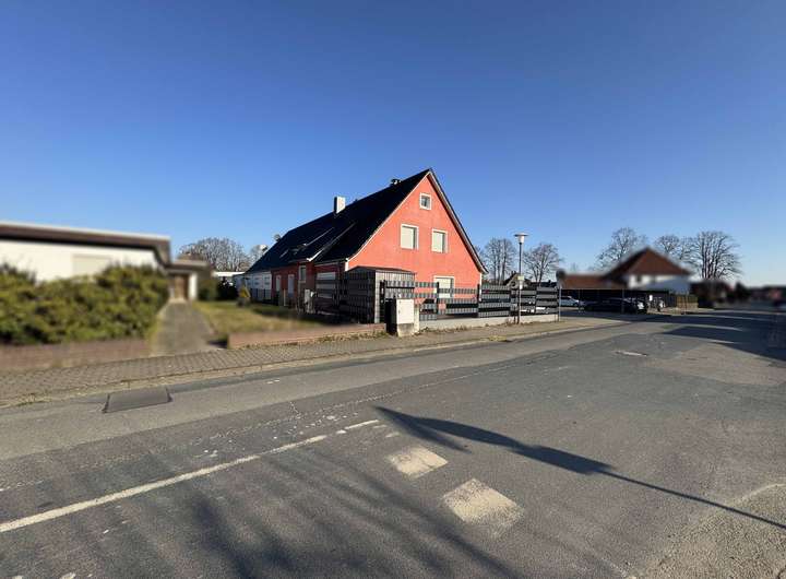 Das Grundstück ist in zwei Flure aufgeteilt (430 m² + 1.386 m²), wobei ein Teil derzeit von einem Autohaus genutzt wird.