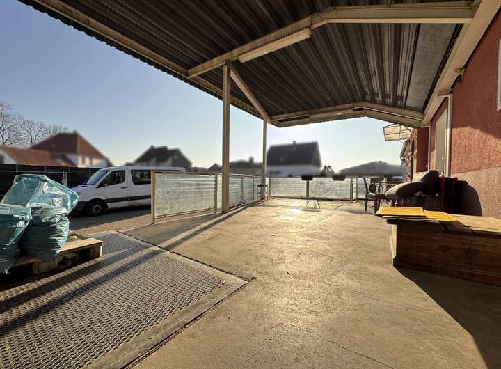 Die Lagerräume bieten viel Platz für Gewerbe oder Hobby: Drei Garagen mit je ca. 45 m², zwei große Lagerhallen mit je ca. 100 m² und ein Dachgeschosslager mit ca. 80 m². Eine Halle verfügt über eine Laderampe, zudem gibt es eine überdachte Außenfläche.