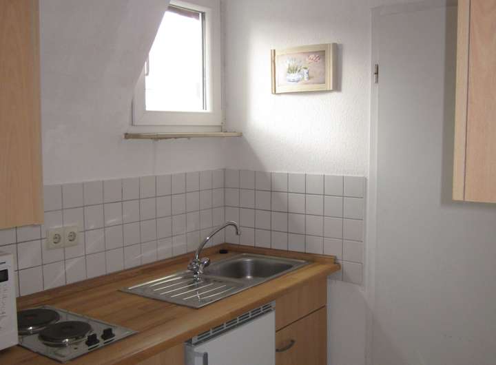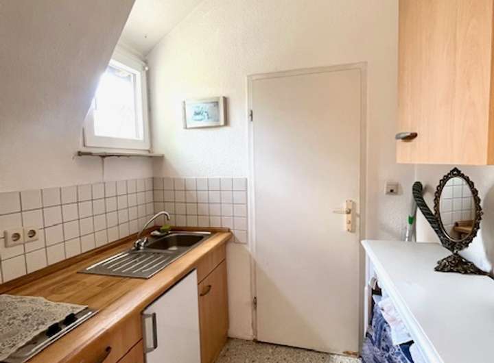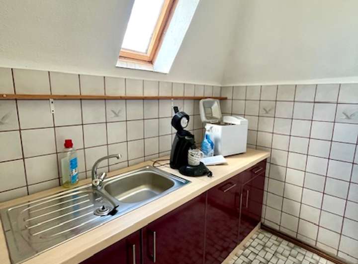 Über eine schöne alte Holztreppe geht es ins OG, dort befinden sich aktuell drei sehr geräumige große 1 ZKB Wohnungen, alle mit Küche und Duschbad.