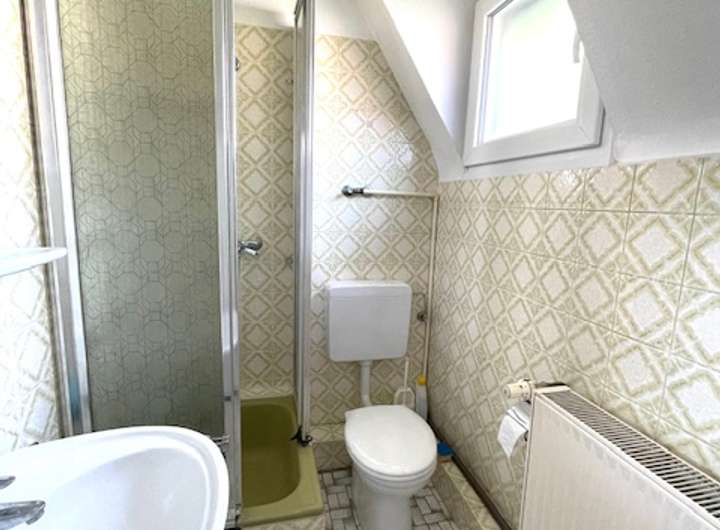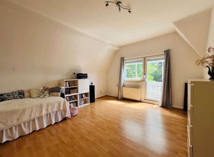 Im EG gibt es 2 große helle Räume, und die große separate Küche mit Abstellraum. Ein Gäste WC und ein seperates Bad mit Tageslicht und Wanne runden das großzügige Wohngefühl im Erdgeschoss ab. Ein Balkon zum Garten lädt zum verweilen ein.
