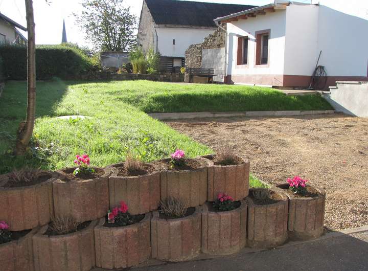 Vor dem Haus befindet sich ein kleines Gartengrundstück (ca. 150 m²) mit Terrasse – ideal für gemütliche Stunden im Freien, zum Entspannen oder für den Grillabend im Sommer.
