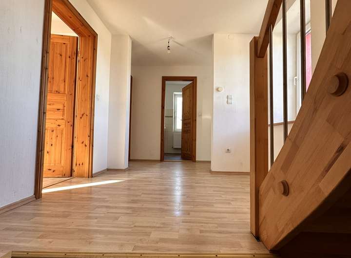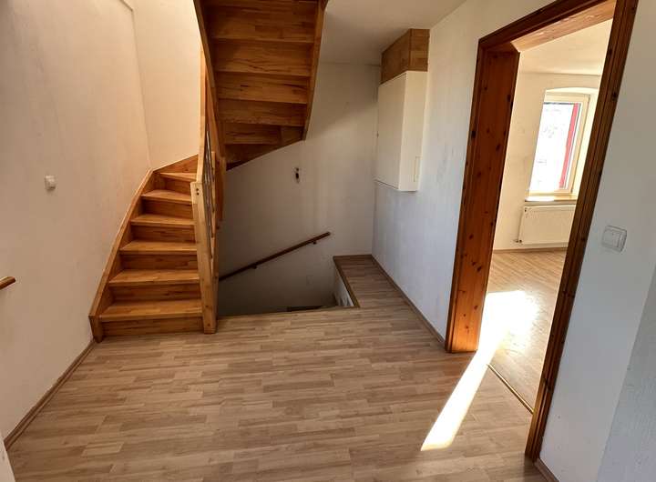 Über die gefliesste Treppe gelangt man in die erste Etage, wo sich zwei Zimmer sowie ein weiteres Badezimmer befinden.