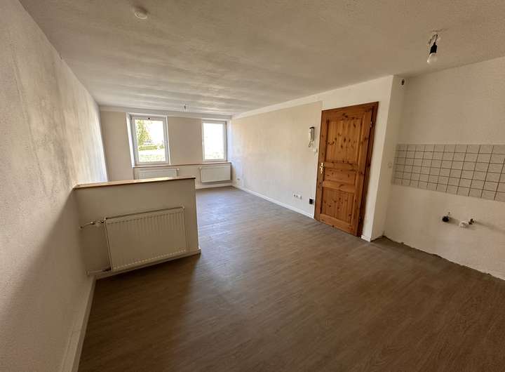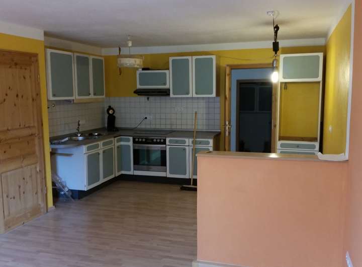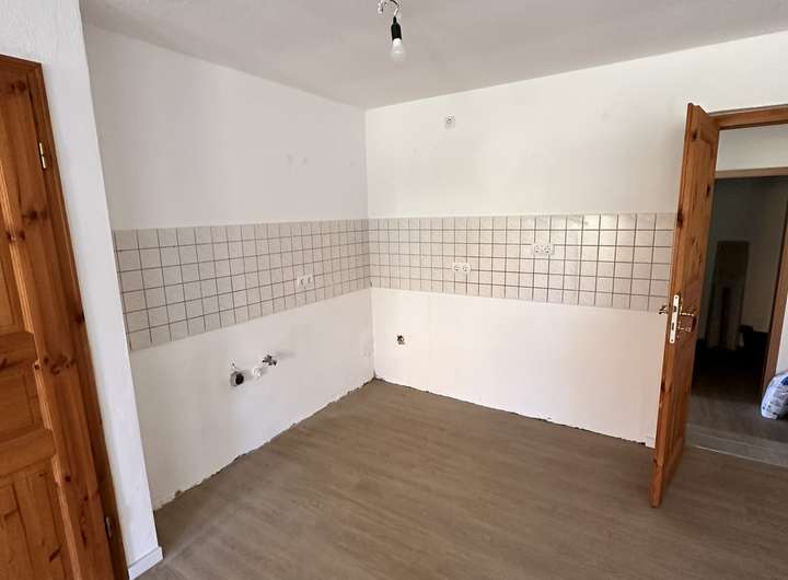 Geradeaus gelangen Sie in die Küche, die nicht möbliert ist und nach eigenen Vorstellungen eingerichtet werden kann.