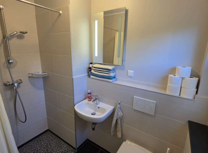 2 Kaminöfen (1x Keller ubd 1x Esszimmer), bodentiefe Fenster, Induktionskochfeld, Vinyl-Foßboden, alle Fenster mit Rollläden, alle Zimmer mit Internet- und Kabelanschluss, Internet mit bis zu 300mbit/sechs.