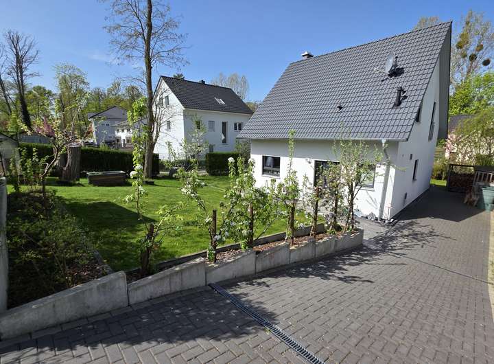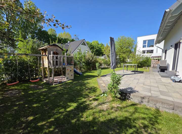 Die nach südwesten ausgerichtete große Sonnenterrasse mit Blick auf den angelegten Garten und das Kinderspielhaus bietet viel Zeit zur Erholung.