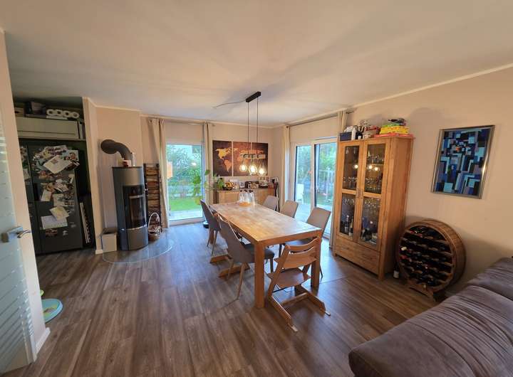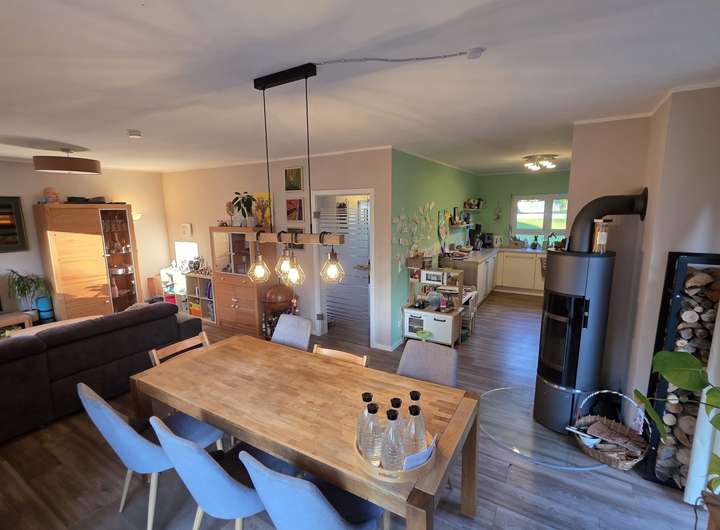 Im Haus ist eine Fußbodenheizung und im Esszimmer zudem ein Ofen für gemütliche Wärme eingebaut.