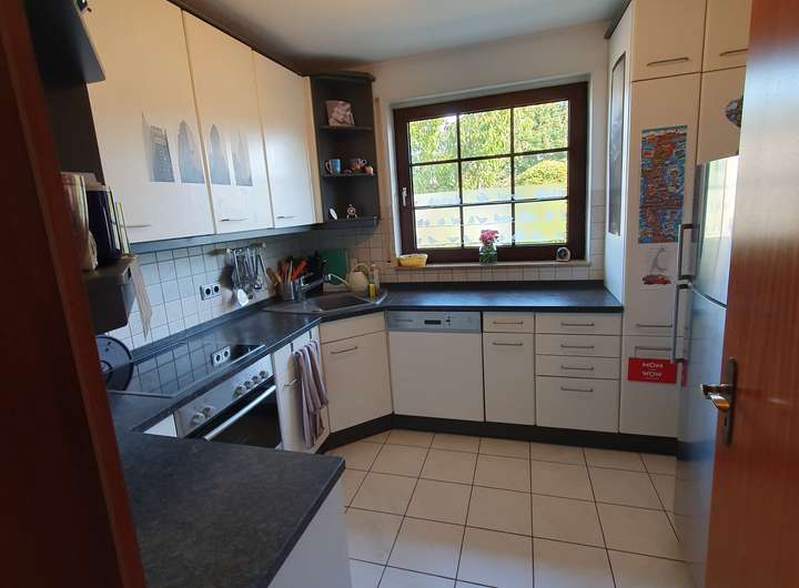 - Einbauküche mit Apothekerschrank, Geschirrspüler und Bosch-Elektroherd mit Backofen und Cerankochfeld