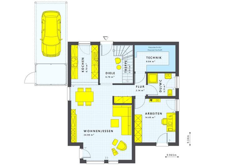 Auch die Ausstattungsberatung in der Haus-Statterei steht dir zur Verfügung, begleitet von einem Bodengutachten durch erfahrene Architekten. Die Ausstattung umfasst zudem eine vorkonfigurierte I-KON-Lösung inklusive PV-Anlage mit Speicherbatterie und Wärmepumpentechnik für effizientes Heizen. Bodengleiche Duschen und Aluminiumrollläden runden das Paket ab.